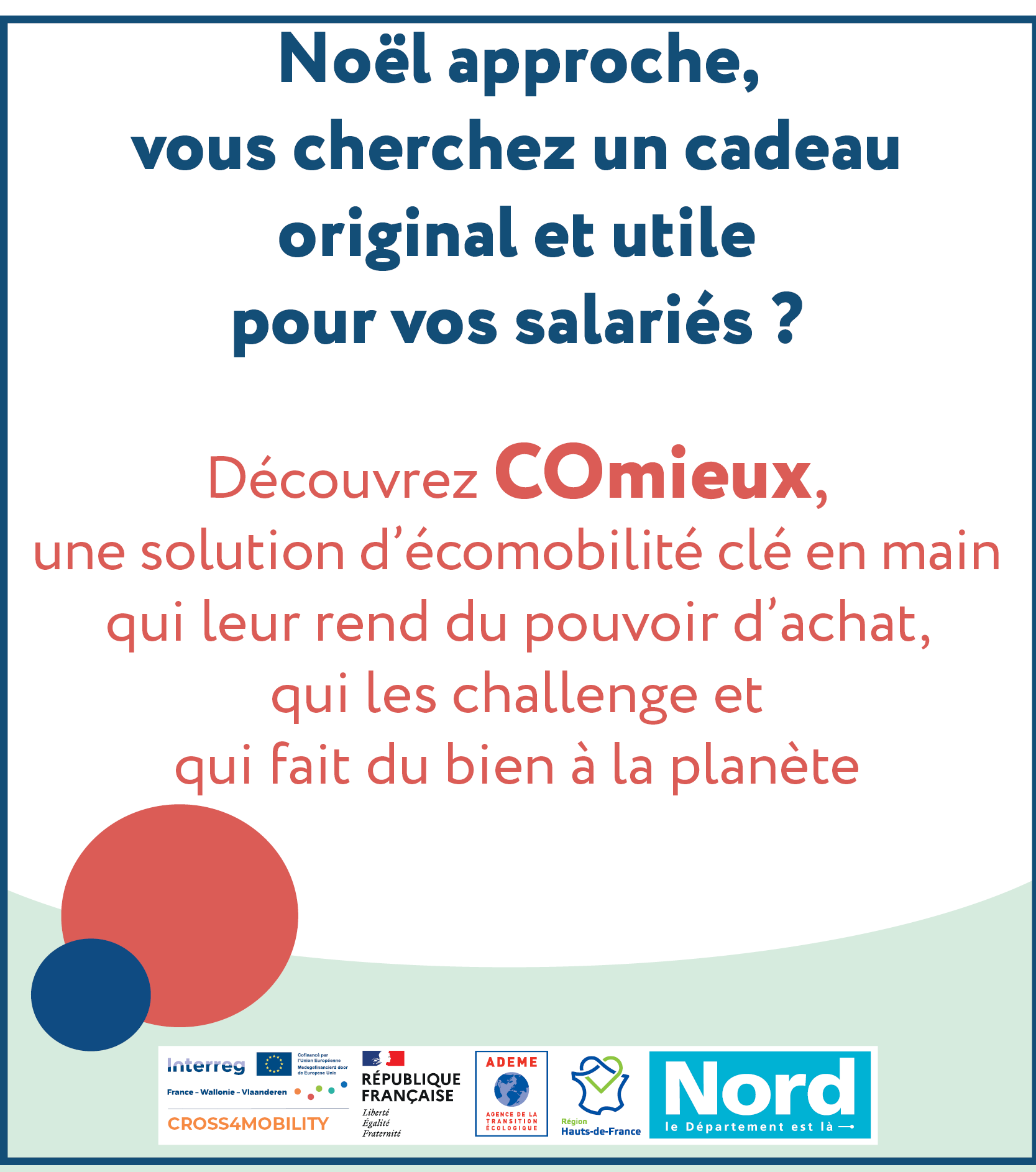COmieux est un projet innovant d’écomobilité à destination des entreprises et collectivités qui permet de réduire les émissions de Gaz à effet de serre et de rendre du pouvoir d’achat aux collaborateurs.